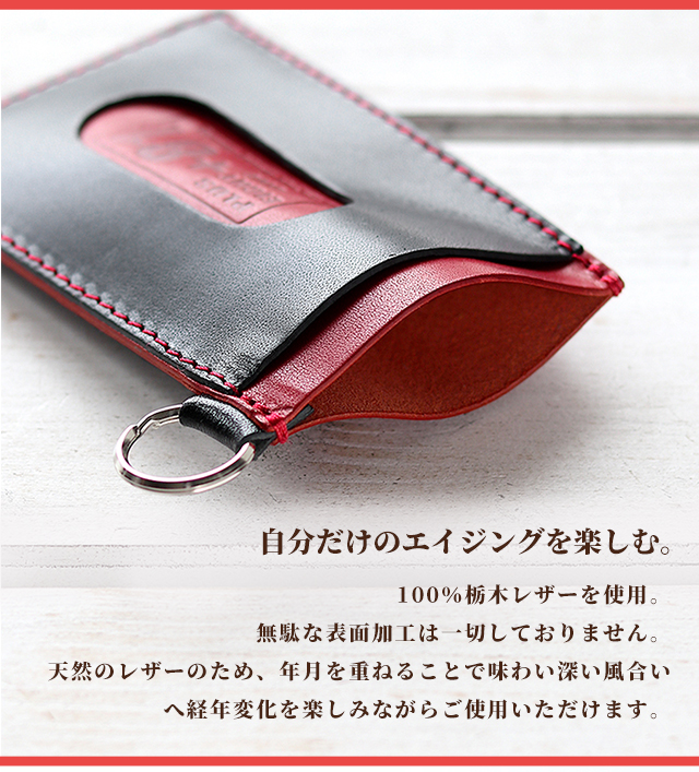 | 仕様 | カードポケット×3・Dリング・約100cm栃木レザー革ひも付き |