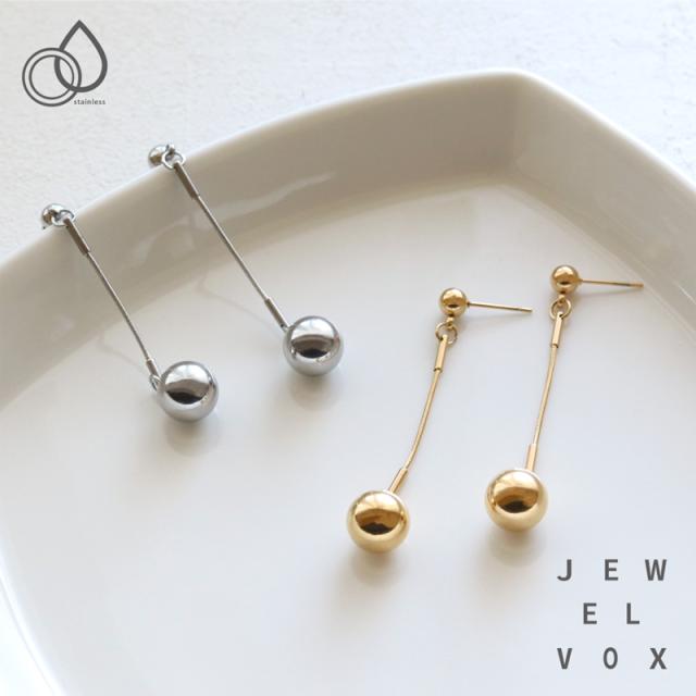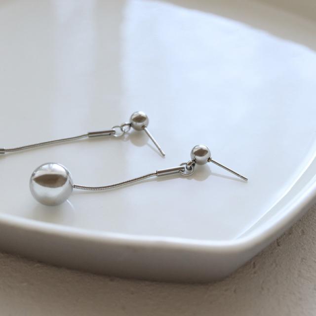 ピアス ステンレス製 レディース メタルボール 揺れる スネークチェーン 金属アレルギー サージカルステンレス シンプル 大人可愛い