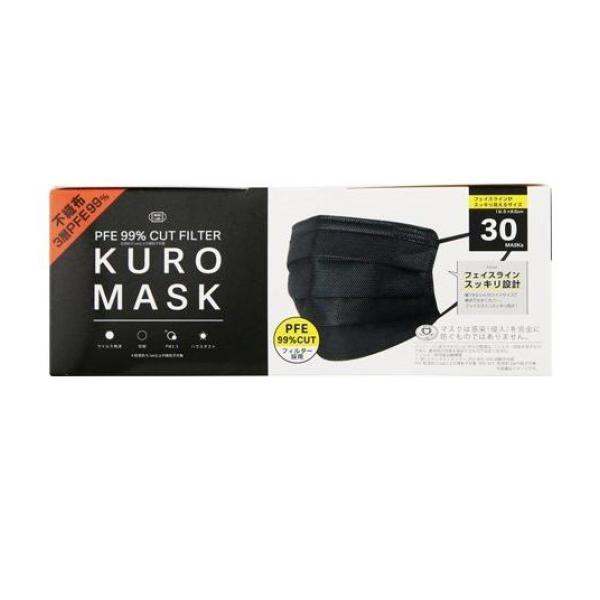 ●KURO MASK(クロマスク)●黒い不織布3層マスクです。●不織布3層フィルターで、ウイルス・細菌飛沫等を99%カット●BFE(バクテリア飛沫捕集効率)試験 粒径約 3μm:99%カット●VFE(ウイルス飛沫捕集効率)試験 粒径約3μm:99%カット●PFE(微粒子捕集効率)試験 粒径約0.1μm:99%カット※フィルター部性能試験機関●PFE・BFE・VFE試験:(一財)カケンテストセンターにて実証データ取得●立体プリーツ加工採用(息苦しくない、メイク崩れしにくい)●鼻部分のノーズワイヤーで、安定したつけ心地。●1日使いきりタイプ。●一般的なレギュラーサイズのマスクが175mm×90mmに対して、本品は195mm×85mmのワイドな形状です。その為、着けた時にフェイスラインがすっきり見える構造になっています。●カラー:外側ブラック、内側ホワイト