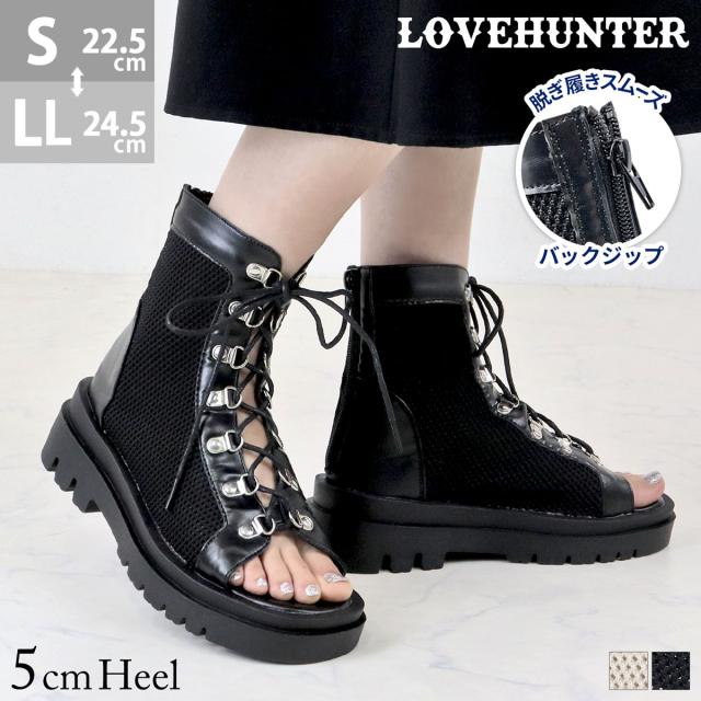 【LOVEHUNTER ラブハンター】のレースアップメッシュブーツサンダル。