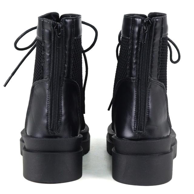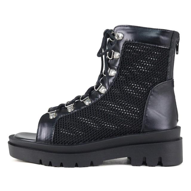 ブーツサンダル レディース ボリュームソール レースアップ メッシュ 5cmヒール ミドル丈 オープントゥ バックジップ No.1602 22.5cm-24.5cm 黒 ラブハンター