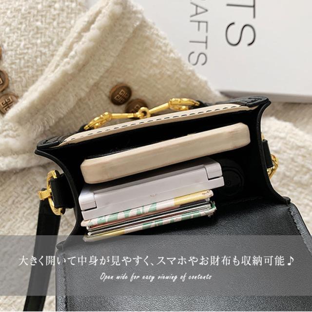 スマホやお財布が入るボックス型のポーチで、型崩れしにくく中身が見やすく取り出しやすいのが便利です。