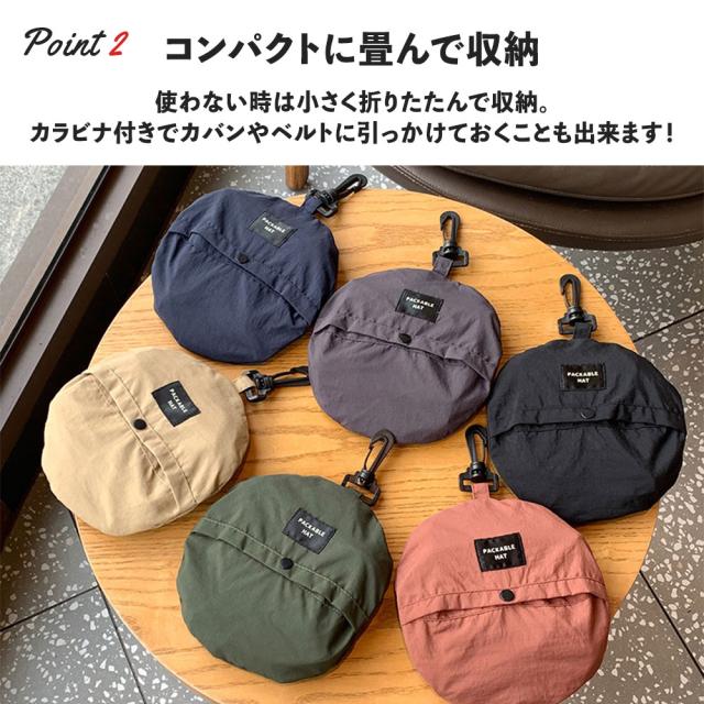 帽子をひっくり返すと袋状になりコンパクトに畳んで持ち運ぶことが可能!