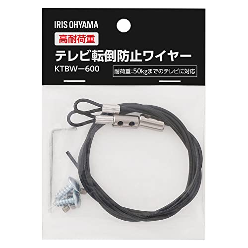 アイリスオーヤマ ワイヤー テレビ 転倒防止 高耐荷重テレビ転倒防止ワイヤー KTBW-600 ブラック ワイヤー長さ:約60cm