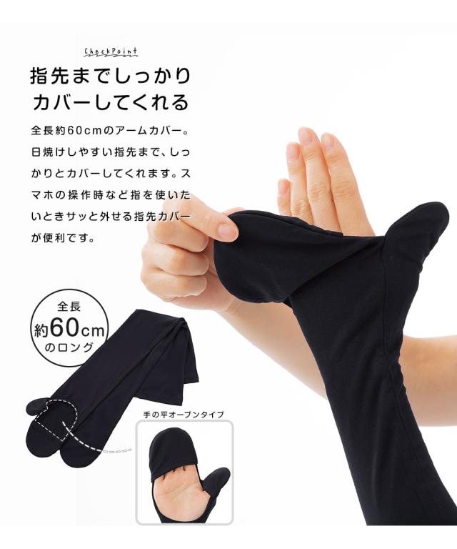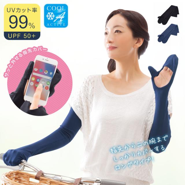 COOL指先ガードアームカバー ロングタイプ アームカバー UV 冷感 レディース uvカット ストレッチ カバー アウトドア スポーツ 外出 ウォーキング ガーデニング 登山 日焼け止め 夏 折りたたみ コンパクト 夏用 ひんやり 接触冷感 黒 ブラック ネイビー 遮熱 遮光 23
