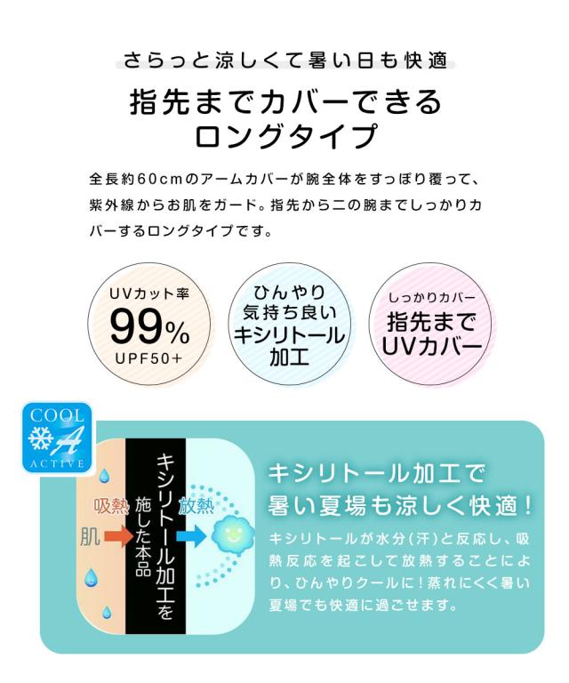 キシリトール加工で二の腕から指先までクールに快適アームカバー