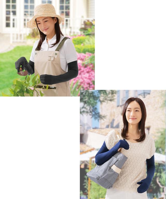 全長約60cmのアームカバーが腕全体をすっぽり覆って、紫外線からお肌をガード。