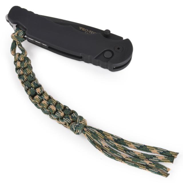 ランヤードコードやキーホルダーでよく使用される角編みのパラコードストラップ。ナイフに付ければポケットやシースからスムーズにナイフを取り出すことができます。パラコードはインナーコア(芯)に7本の糸が入ったタイプ3を使用。