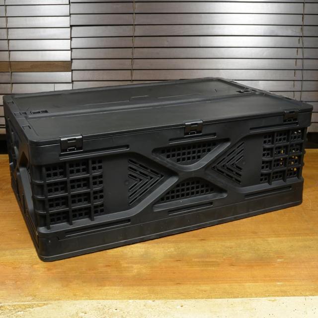 コンテナボックス 折り畳み式 ロック付き蓋 プラスチックフレーム 容量50L [ ブラック ][ra16959]
