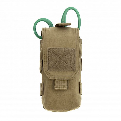兵士の個人用医療キットである、コンバットガーゼや外傷用包帯、止血帯、医療ハサミなどを収納でき、メイン収納部にはウェビングストラップを装備し、ストラップを引く事で内容物を片手で引き出せる仕様となっています。