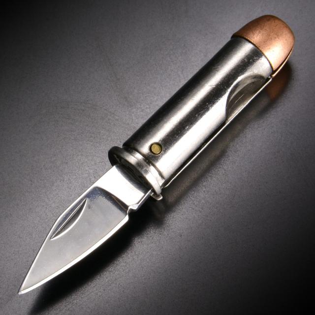 S&W M29やデザートイーグルなどの大口径リボルバー用の弾薬の44マグナム弾と同じサイズに設計された折り畳みナイフです。