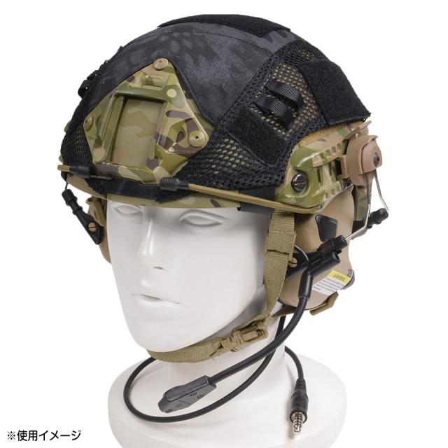 ミリタリーファンの間では知名度が高いFASTマリタイムタイプのヘルメットに対応。装着方法はヘルメットに被せてベルクロテープで留めるだけの簡単仕様です。
