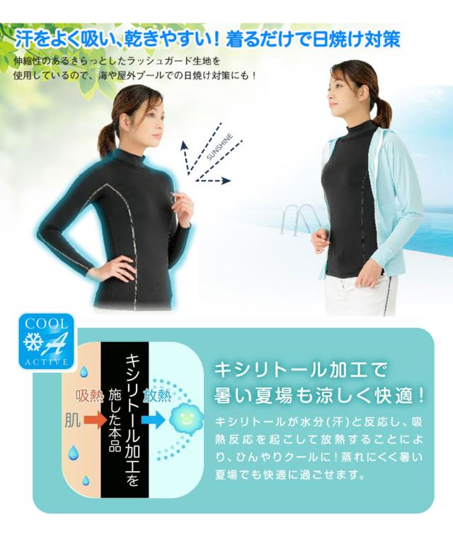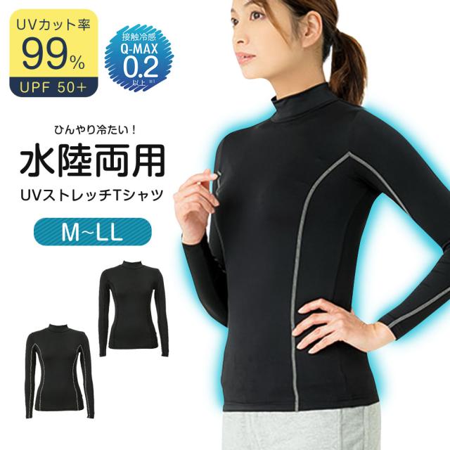 クールUVストレッチロングTシャツ ロンt ロング tシャツ レディース ラッシュガード レディース 長袖 UPF50 uvカット ストレッチ アウトドア スポーツ 外出 ウォーキング ガーデニング 日焼け防止 夏 夏用 ひんやり 接触冷感 黒 ブラック 遮熱 遮光 26