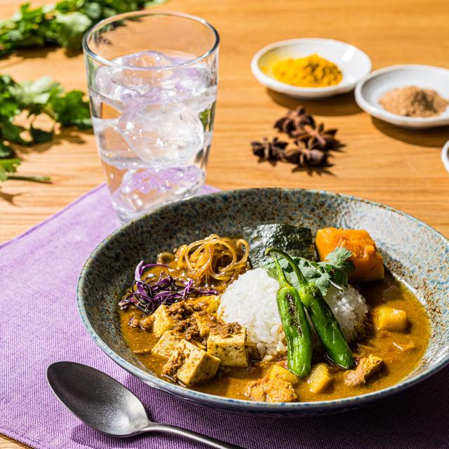 東大阪「大衆中遊華食堂 八戒」は1998年創業の東大阪が誇る町の中華屋。店主名から由来の『Osamu式』カレースパイス料理を提供している。多数のメディアで紹介され熱狂的なファンも多く、カレーマニア達はこぞって食べに来る行列中華店。スパイスの匠こだわりの唯一無二のスパイスカリィは深いスパイスを楽しめるのが魅力。スープベースに数種類のカレー粉や香辛料を加え、スパイシーに仕上げた麻婆キーマカリィと、花椒と豆板醤のコク深いスパイシーな仕上げで鶏肉の旨味とトマトの酸味が口の中に広がる中華チキンカリィのあいがけスタイル。アレンジで豆腐入れ、パクチーなど野菜を添えるとさらに堪能できます。