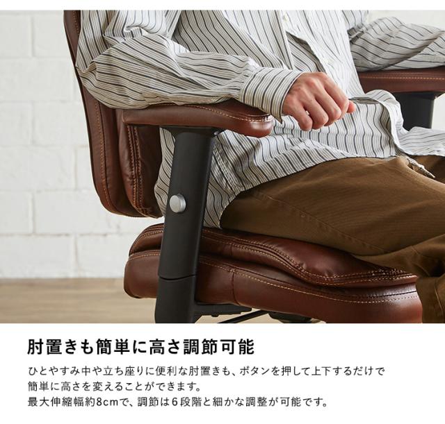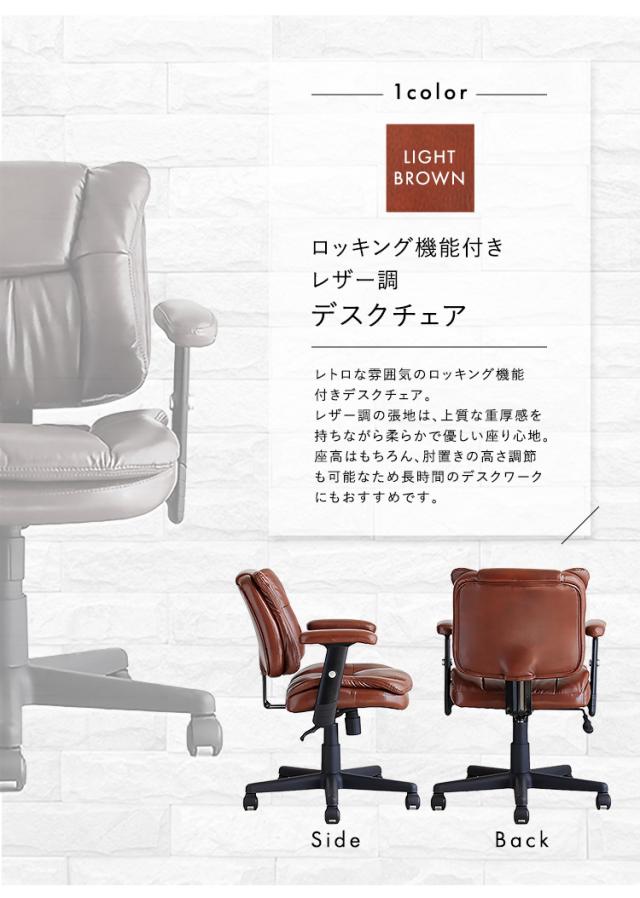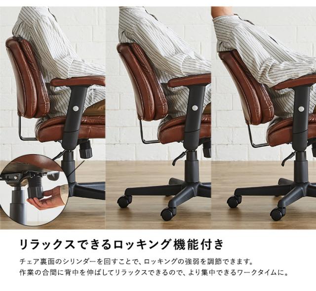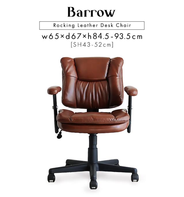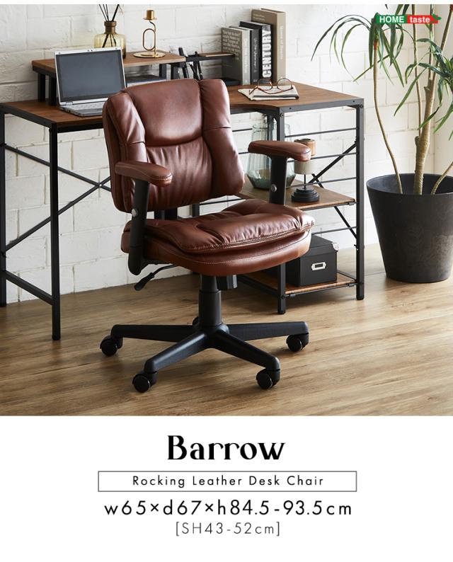 ロッキング機能付き レザー調デスクチェア Barrow デスクチェア オフィスチェアー チェア チェアー 椅子 イス いす デスク オフィス 高さ調節 肘掛け キャスター付き ロッキング 昇降式 1脚 レザー 合皮 おしゃれ
