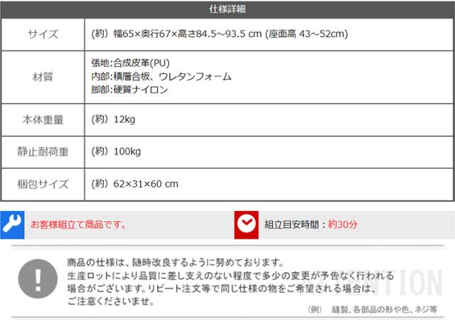 W65 x D67 x H84.5〜93.5cm