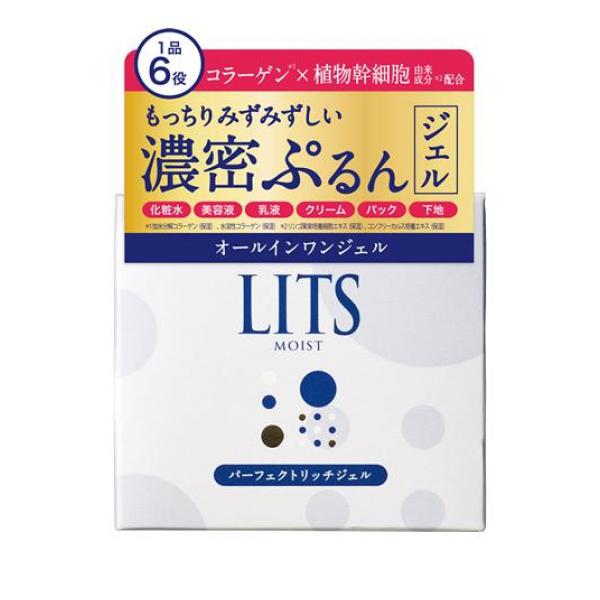 ●LITS MOIST(リッツ モイスト)パーフェクトリッチジェル●ジェル美容液●洗顔後これひとつでお手入れが完了。●コラーゲン(※1)×植物幹細胞由来成分(※2)配合オールインワンジェル。●ぷるんとみずみずしいジェルが角質層のすみずみまで浸透、ベタつかずにしっとりなじみます。●リッチな潤いでお肌を乾燥から守り、ふっくらとなめらかに整えます。[※1:加水分解コラーゲン・水溶性コラーゲン(保湿)][※2:リンゴ果実培養細胞エキス・コンフリーカルス培養エキス(保湿)]