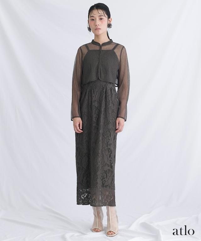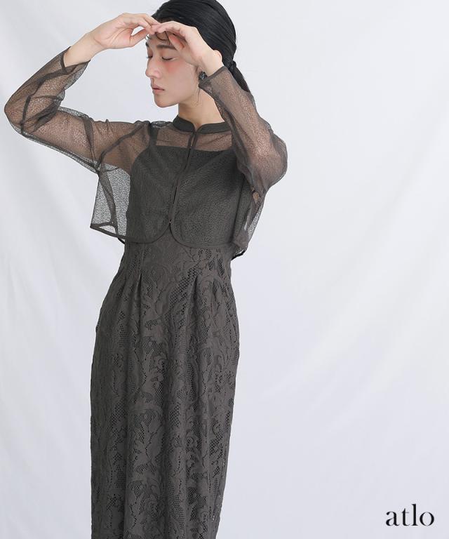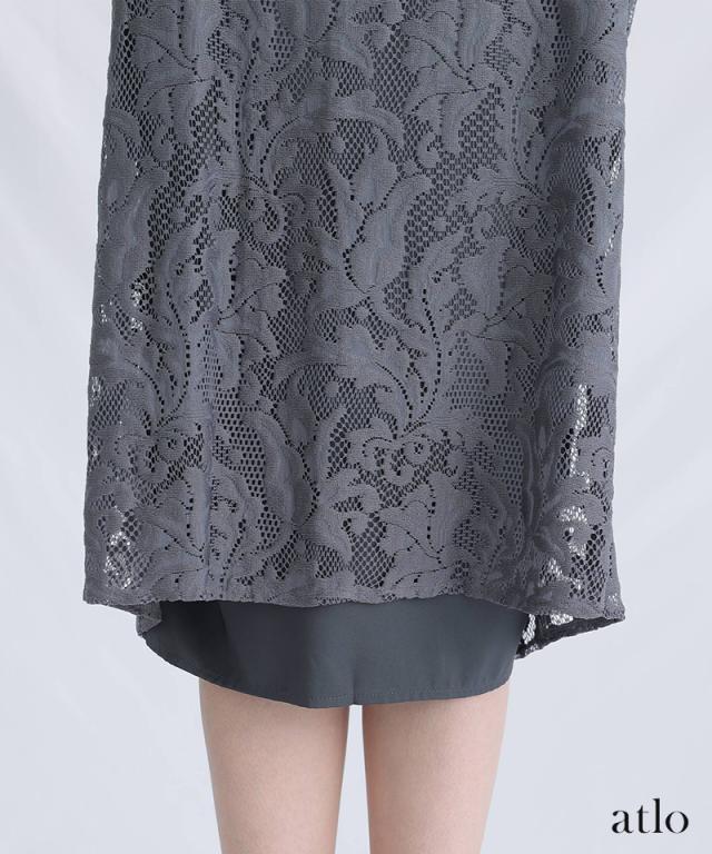 繊細なメロンレーストップス付きのワンピースです。