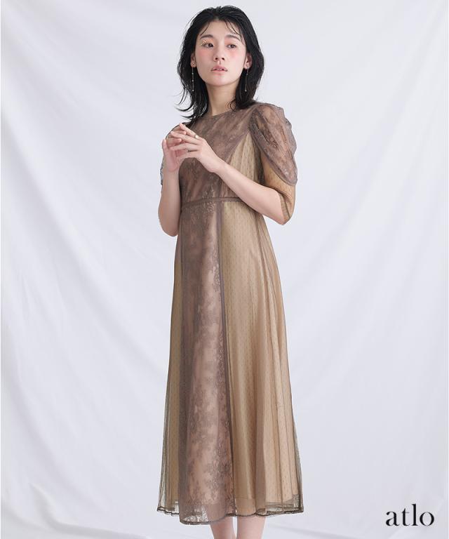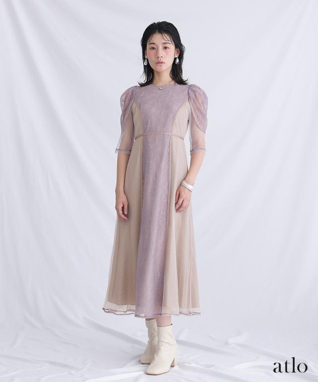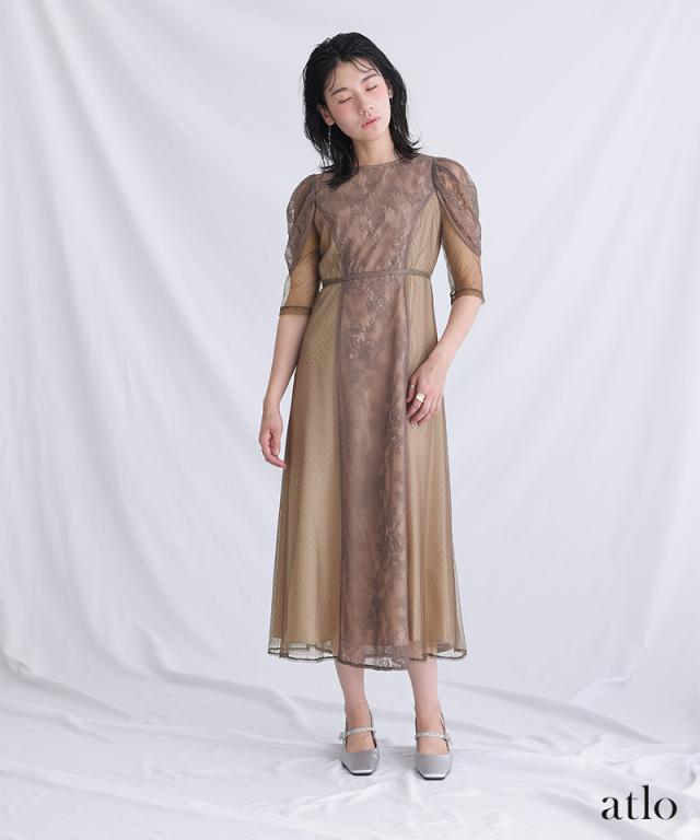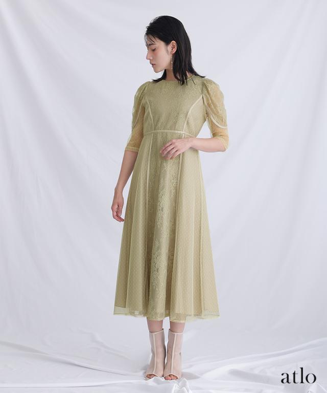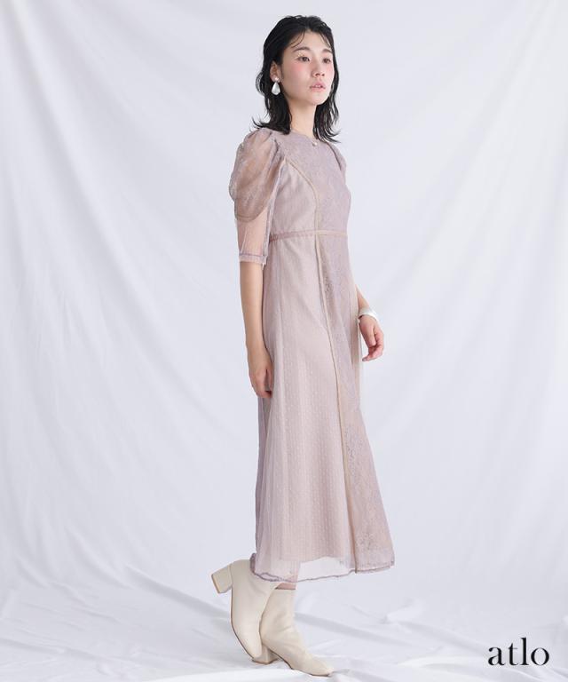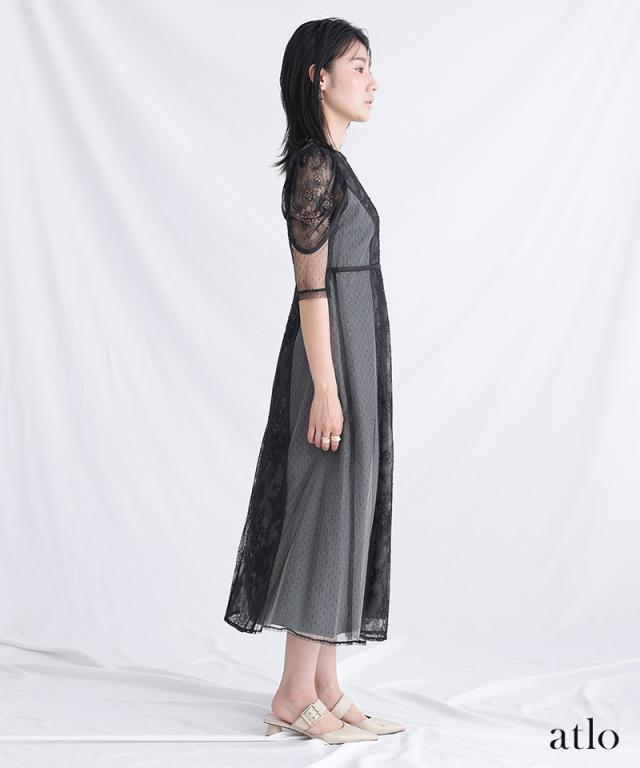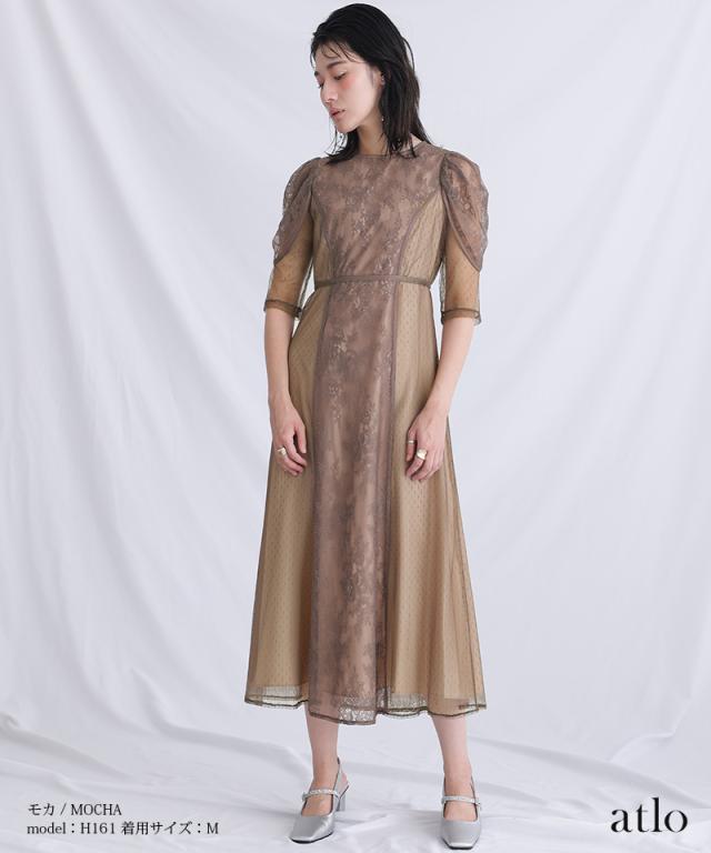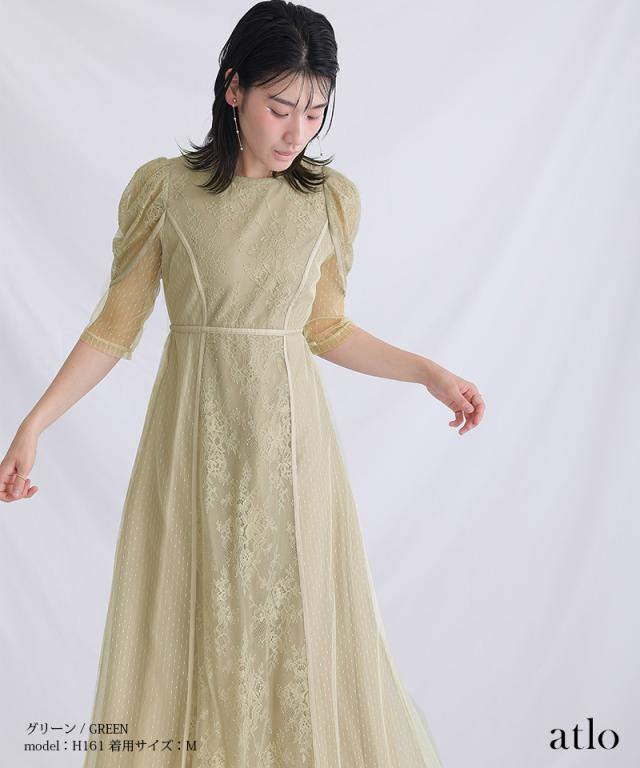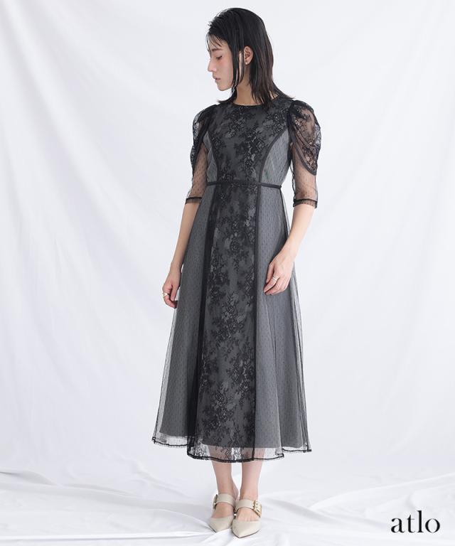 タックスリーブレース×ドットチュールワンピース【761231678】20代・30代・40代・54代長袖・膝丈・セットアップ・スカート・体型カバー・ジャケット・テーラード・スーツ・大きいサイズなど・即日発送・送料無料結婚式・婚活・披露宴・顔合わせ・二次会・同窓会・お呼ばれ・食事会・謝恩会・親族・七五三・お宮参り・冠婚葬祭・弔事・女子会・デート・入学式・卒業式・入園式・卒園式・ママ・マタニティー・セレモニー・セレブ・パーティー