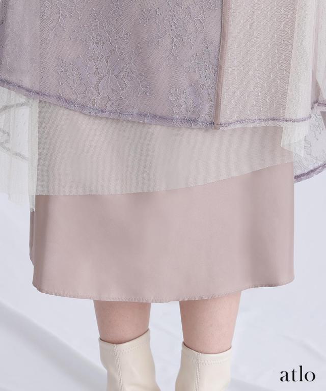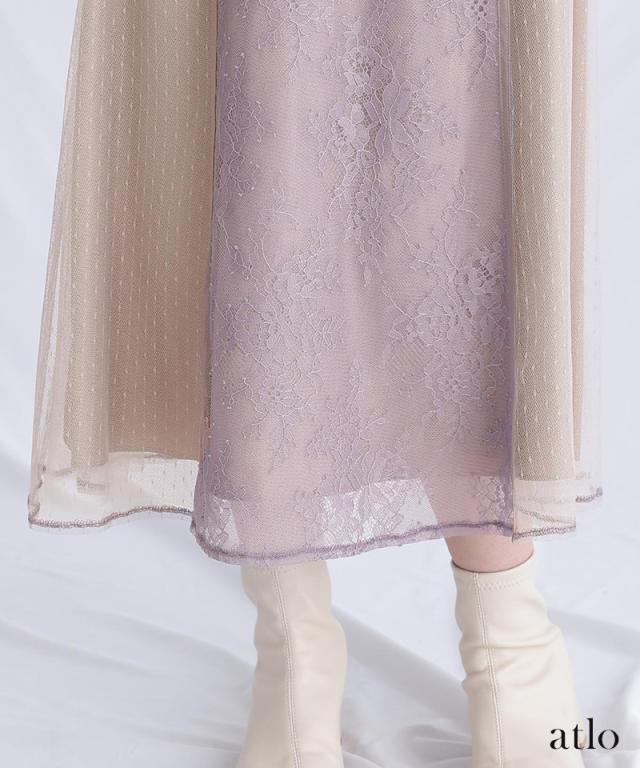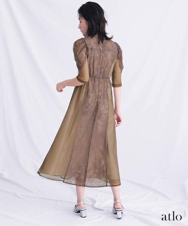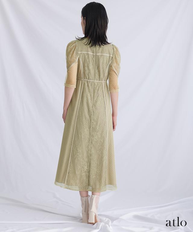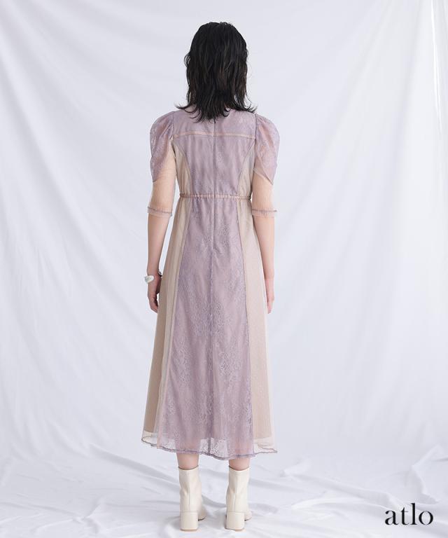 タックスリーブレース×ドットチュールワンピース/761231678