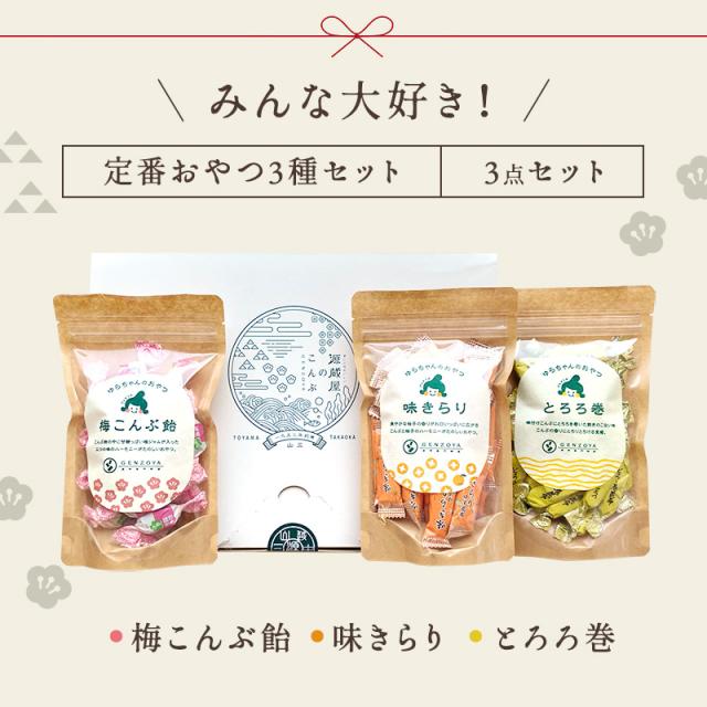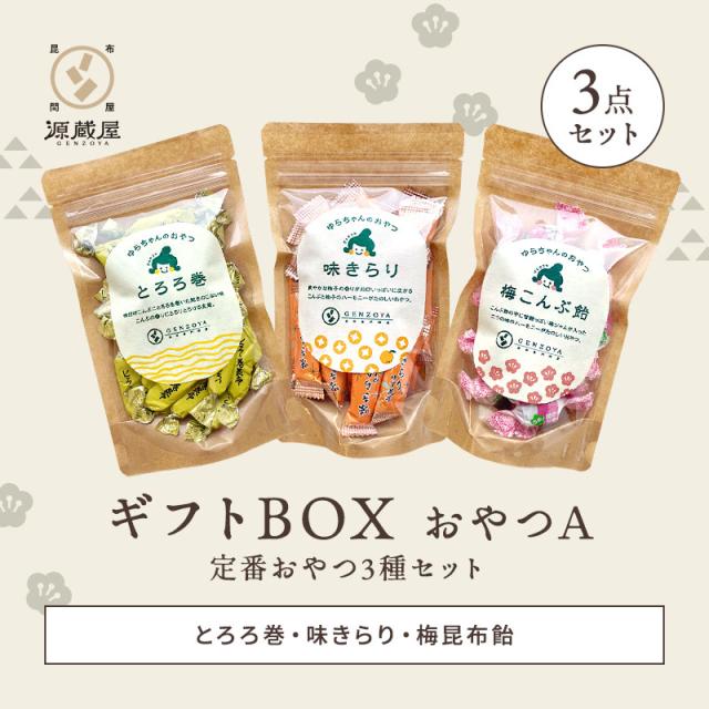 ギフトボックス おやつA 3点セット 【定番おやつ3種セット】 (とろろ巻・梅昆布飴・味きらり) 送料無料 メッセージカード対応