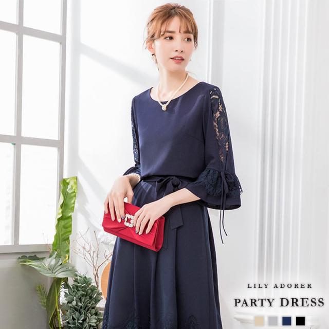 レースブラウスが可愛いセットアップAラインパーティードレス♪