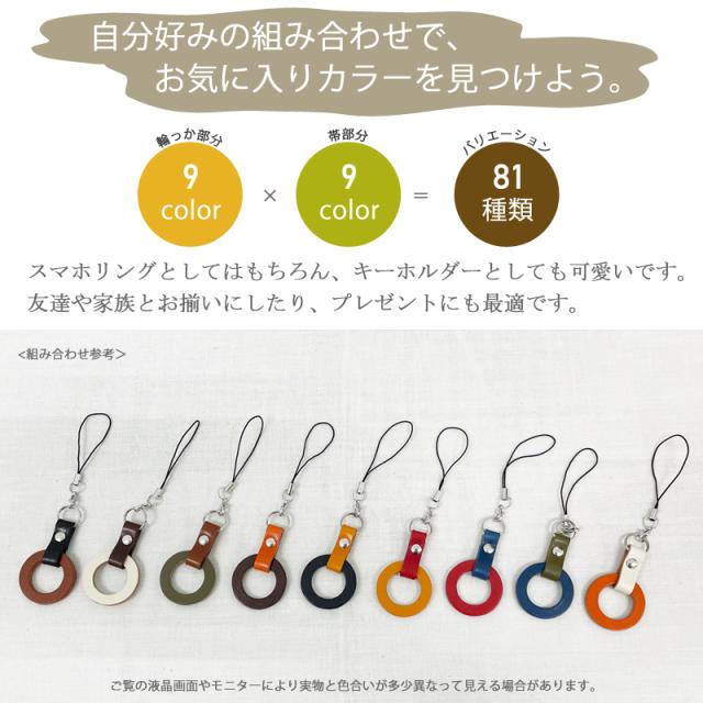 スマホリング ストラップ 栃木レザー 本革 キーホルダー つり革風 ハンドメイド レザークラフト スマホストラップ 携帯ストラップ 送料無料 即納 1000円ポッキリ