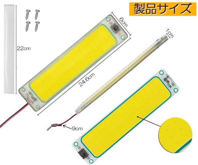 ルームランプ LED キャンパー室内灯 貨物灯 車内照明 汎用 小型車 トラック 12V 24V マーカーランプ キャンピングカー テントライト 作業車用 COB素子 PCカバー 電源スイッチ付き ネジ 両面テープ付き