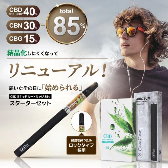 CBDリキッド カートリッジ スターターセット 高濃度 85% CBD CBN CBG 内容量 1ml CANNACREATE ディスティレート テルペン豊富 電子タバコ ベイプ 【85TRVP】