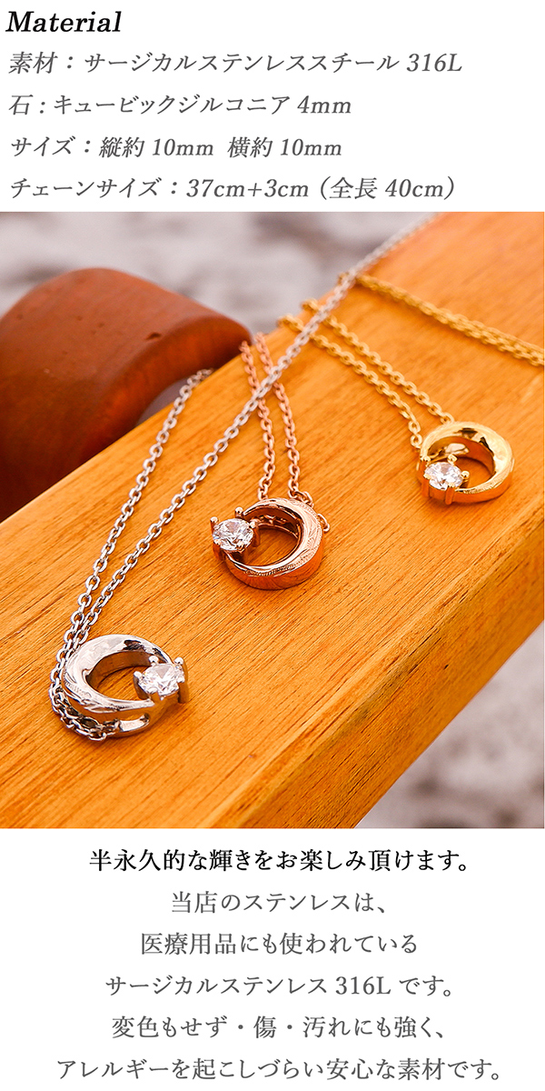 ハワイアンジュエリー ネックレス レディース メンズ サージカルステンレス スクロール 波 月 三日月 ムーン チェーン付き 金属アレルギー対応 インスタ sale