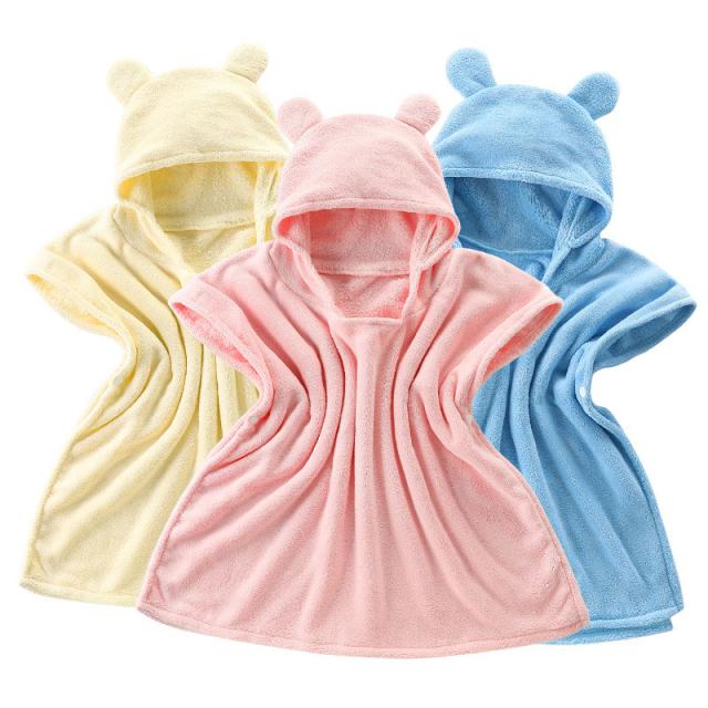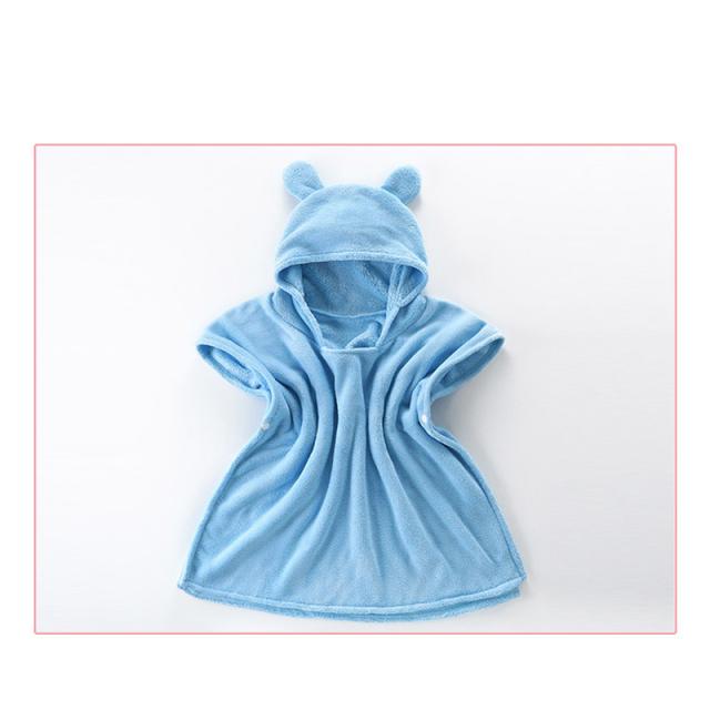 ベビーバスローブ ポンチョ 赤ちゃん 出産祝い キッズ フード付 バスタオル 子供用 ボタン付き プール 水遊び 着るバスタオル