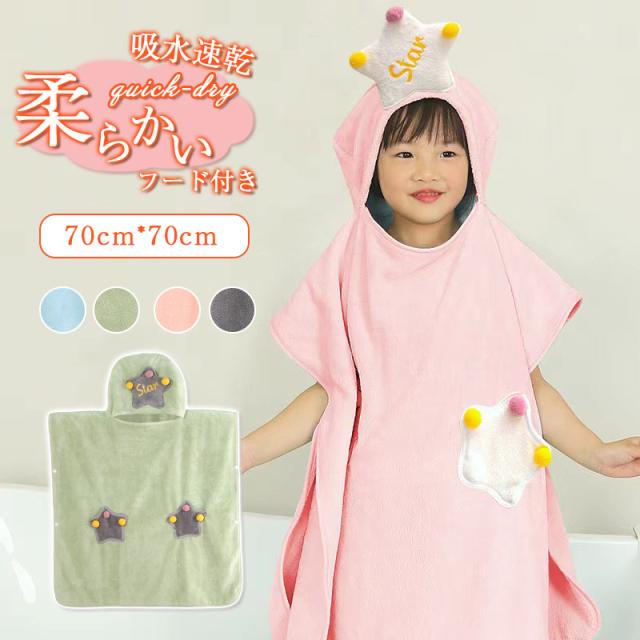 バスローブ キッズ バスポンチョ フード付き タオル バスタオル 子供用 男の子 女の子カラフル 柔らかい 吸水性いい 出産祝い