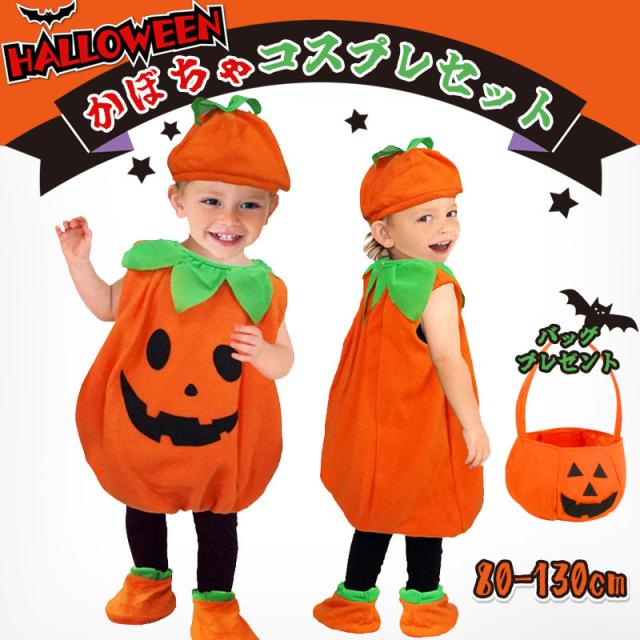 カボチャ(バッグ付き)子供 コスプレ コスチューム キッズ 男の子 女の子 仮装 ゾンビ 吸血鬼 ヴァンパイア 海賊 パーティー ステージ 衣装 cosplay 仮装パーティー イベント ハロウィーン かぼちゃ クッキー ハロウィン クリスマス