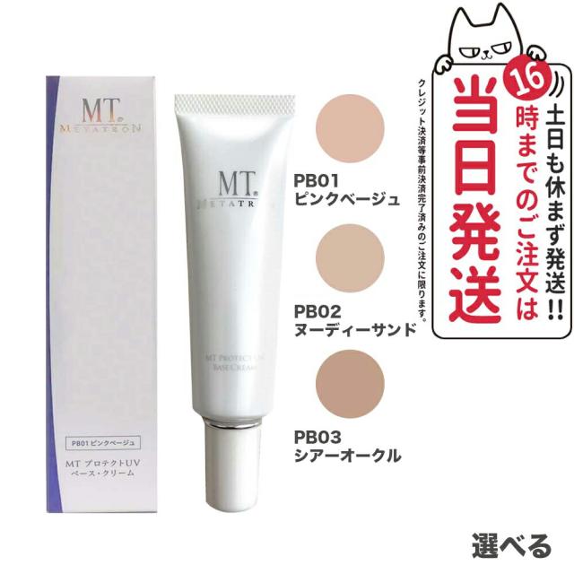 3色選べる MTメタトロン化粧品 MT プロテクトUVベース クリーム SPF26 PA++ 30ml クリーム PB01 ピンクベージュ PB02 ヌーディーサンド PB03 シア—オークル メイクアップベース 日焼け止め 日やけ止め UVケア 送料無料