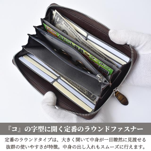 | 特徴 | 『こちらは下記の理由により訳あり品のため、在庫処分でお買い得価格となっております。』 一点ごとにパターンや柄が異なり、画像の仕様と差異がある商品もございますので 大特価にて販売しております。ご指定での注文は承っておりません。 上記の理由での交換、返品はお受け致しかねます。 ご了承の上、ご注文頂きます様お願い申し上げます。 『上品なパイソンを全面に使用してグラデーションカラーで仕上げた贅沢な逸品』 バックカットパイソン特有のお腹側の大きなひし形の鱗模様から 細やかな模様が連続して美しく並んでいるのがパイソンの特徴になります。 一点一点で鱗の大きさ、並び方も異なる貴重な天然素材のパイソンを 美しい色合いのグラデーションで染め上げたお財布になります。 『『コ』の字型に開く定番のラウンドファスナー』 定番のラウンドタイプは、大きく開いて中身が一目瞭然に見渡せる抜群の使いやすさが特徴です。 中身の出し入れもスムーズに行えます。 『背面部分の仕様について』 お財布の背面には革を取る際の仕様上、繋ぎの縫い目がある物と 無い物の2種類が混在しておりますが、ご指定してご注文頂くことは出来かねます。 予めご了承の上、ご注文頂きます様お願い致します。 小銭入れ両サイドのポケットには、金額でお札を仕分けて収納できます。 カードポケット側にもお札のポケットがあり、合計4カ所あります。 内側の両側面には合計12枚のカードを収納できるポケットがあります。 内側カード収納の裏には便利なフリーポケットが2カ所あります。 |