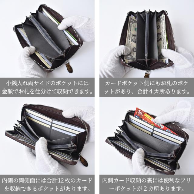 | スペック | 内側:カードポケット×12、フリーポケット×2、紙幣収納スペース×4、小銭ポケット×1 |