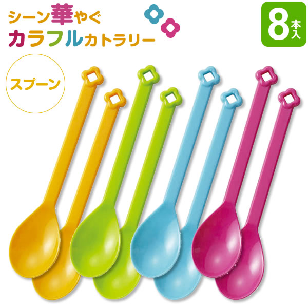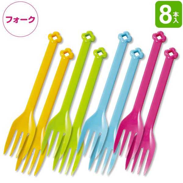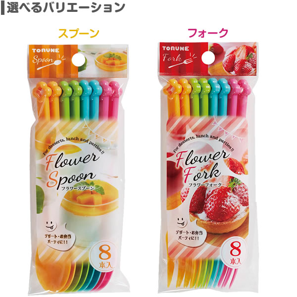 使い捨て スプーン フラワー フォーク/スプーン 8本入 | プラスチック カトラリー フォーク カラフル 行楽 弁当 アウトドア キャンプ 花見 パーティー