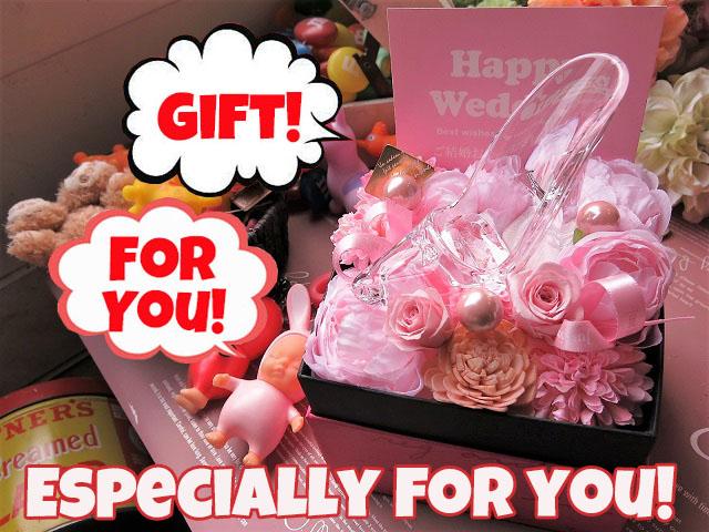 結婚祝いプレゼント 友人 友達 ガラスの靴 入り 花束風 ギフト プリザーブドフラワー入りギフト ケース付き