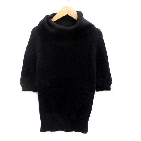 【中古】ナチュラルビューティー ニット セーター タートルネック 半袖 無地 モヘヤ M 黒 ブラック レディース