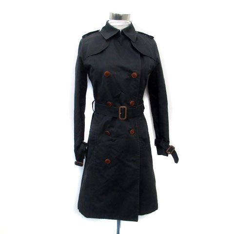 【中古】チャイルドウーマン トレンチコート スプリングコート ロング丈 ベルト付き ライナー付き 2 黒 レディース