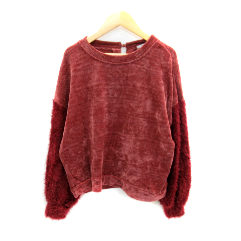 【中古】コロニー トゥーワンスリーナイン ニット カットソー 長袖 無地 切替 シャギー F ボルドー /SY34 レディース