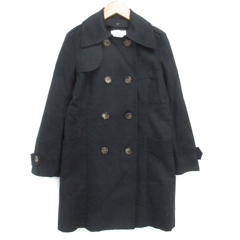 【中古】アクアガール トレンチコート スプリングコート ロング丈 ステンカラー ノーカラー 2way 36 黒 レディース