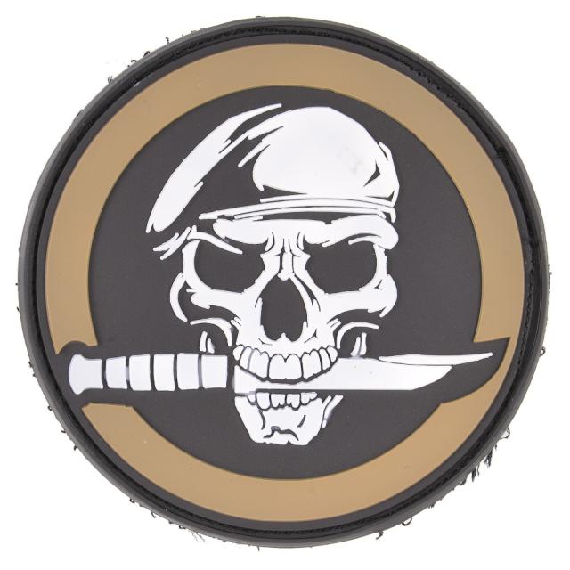 RothcoのPVC(ポリ塩化ビニル)製のミリタリーワッペン。ナイフを口に加えたスカル(ドクロ)がデザインされており、威圧感と恐怖感を見る人に与えます。