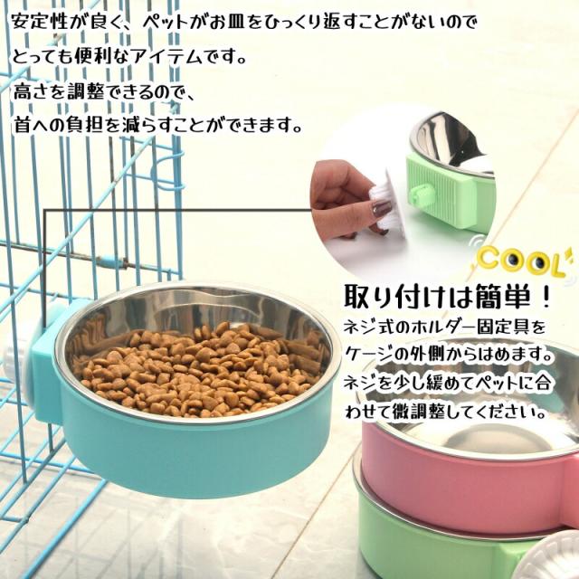 【Mサイズ】 約5cm 約17cm ペット ボウル ケージ用 3colors 犬 猫 給水器 給餌器 食器うさぎ ウサギ 小動物用 フード入れ 水飲み器 フードボウル 取り付けは簡単 ハンガーボウル