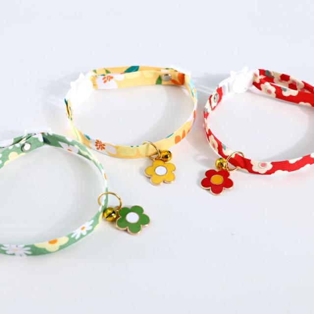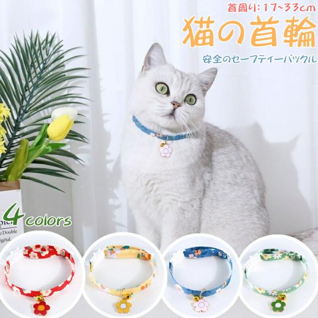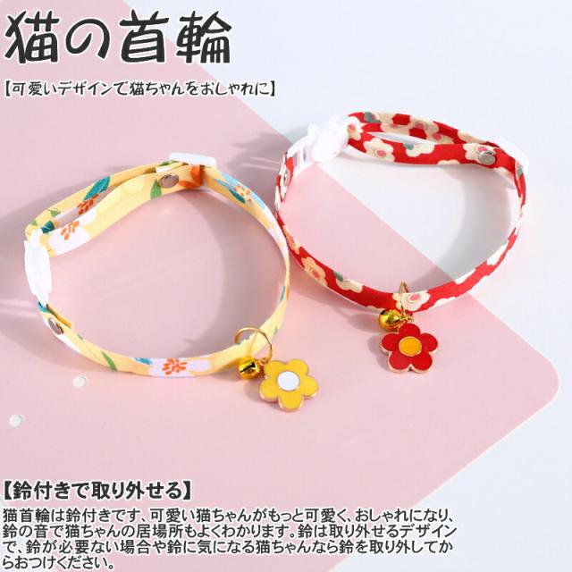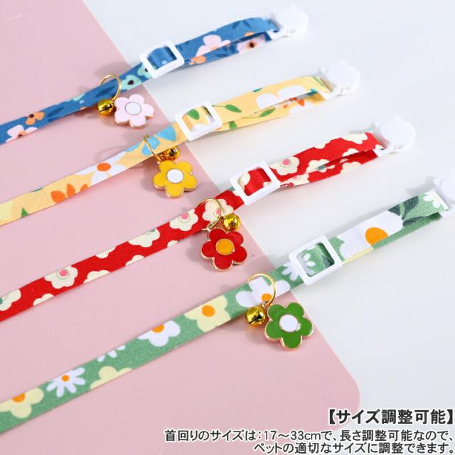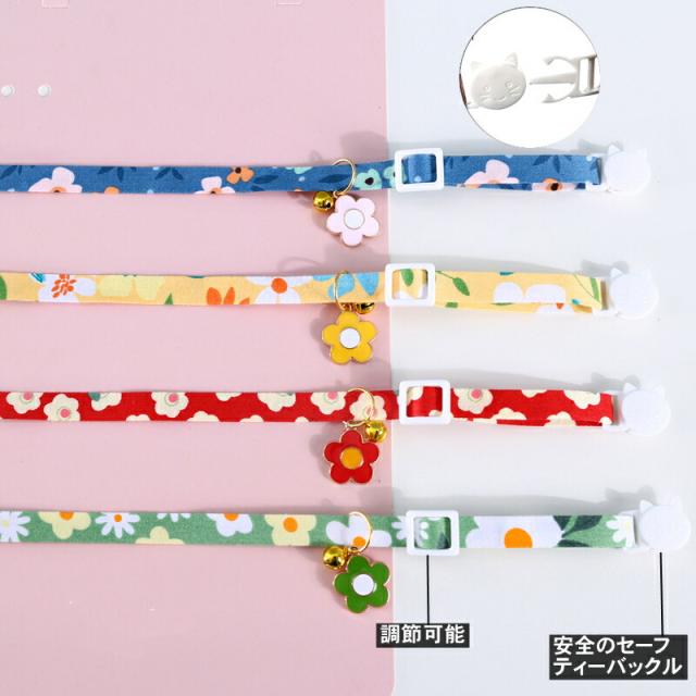 猫用首輪 猫 ネコの首輪 和柄 可愛い 猫用 ペット用 鈴付き 花柄 調整可能 痛くない 4colors サイズ調整 猫ちゃん 子猫〜成猫まで 簡単装着 軽くて柔らか 安全のセーフティーバックル 軽量 ペット首輪 安全バックル 布製 撮影 道具 ペット飾り 優しい