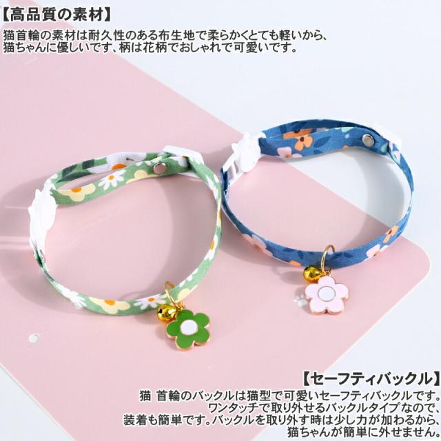 猫首輪の素材は耐久性のある布生地で柔らかくとても軽いから、猫ちゃんに優しいです、柄は花柄でおしゃれで可愛いです。