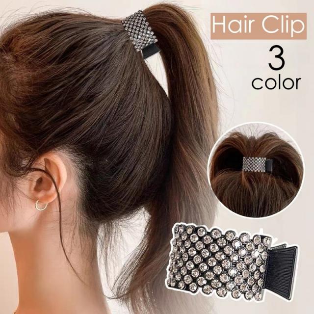 ヘアクリップ テールクリップ ポニーテール レディース 女性 ヘアアクセサリー ポニーリング 髪留め 髪飾り ラインストーン キ