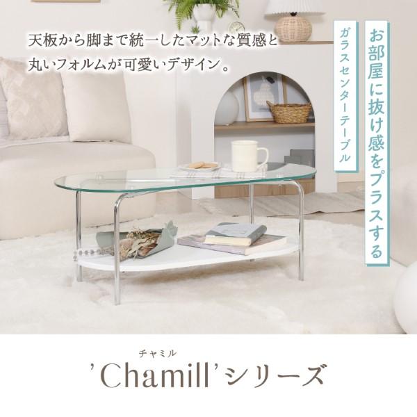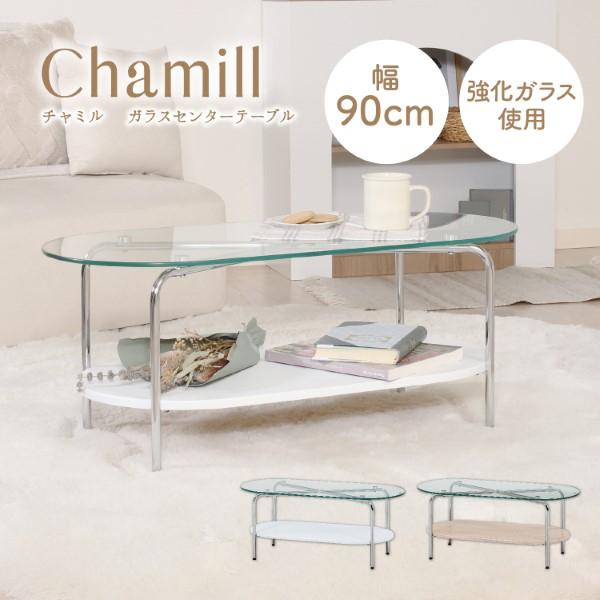 センターテーブル ガラスセンターテーブル ホワイト Chamill おしゃれ 不二貿易