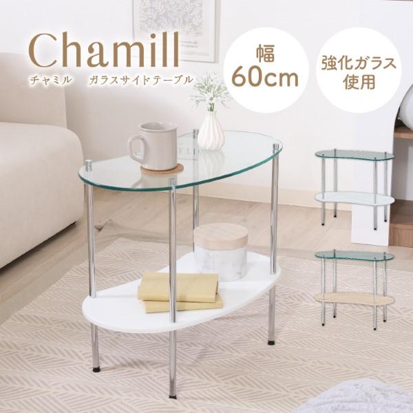 Chamill ガラスサイドテーブル 木目