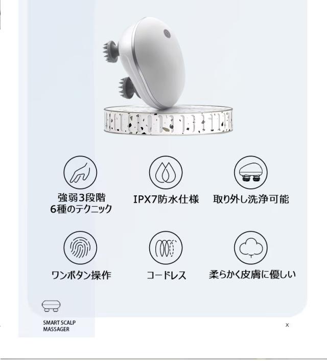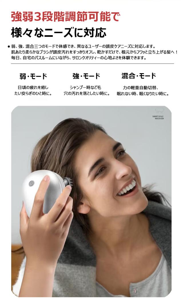 頭皮マッサージ ヘッドスパ 防水仕様 ?弱3段階 取り外し洗浄可能 乾湿両用 コンパクト軽量 頭皮ケア スパ 美顔器 美髪 美容 シリコーンヘッド 自宅 USB充電式 静音 持ちやすい